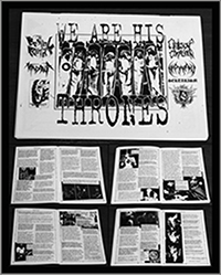 Words ov Nonexistence - the fifth word WE ARE HIS THRONES The fifth plague from the beyond. Spacious interrogations with such bringers of blackness as BESTIAL RAIDS, MANDIBULA, TORMENTED WHORES OF DA'ATH rec., GROTESQUE COMMUNION, NEFTARAKA, SEKTARISM and NOMOS DEI prod. Totally d.i.y. underground zine, raw printing, old-fashioned layout, compact A5 format, 34 pages, small font size, in english. Many-sided questions, experienced attitude and total devotion. Black scriptures of doom from under the ground! Distribution: Nomos Dei |